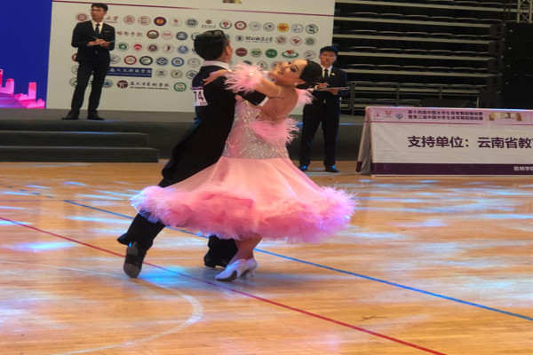 本次大赛是中国大学学生体育舞蹈分会成立以来的第4个年度赛事,也是中国大(中)学生体育舞蹈领域的最高级别赛事。本年度的系列赛事包括四川成都、山东青岛两个全国南北区分赛区的初赛和云南昆明举行的总决赛。总决赛中,来自北京大学、中南大学、郑州大学、中央民族大学、华东政法大学、北京体育大学、云南大学等78所学校千余名选手,分别对127个比赛项目展开激烈角逐。淮师体育舞蹈代表队在领队万象城allwincity官网院长李雷,教练李晗、翟晓阳的带领下参加了本次比赛的23项组别,经过多轮次的激烈角逐,淮师代表队夺得4金1银1铜的佳绩,同时学校获得“优秀组织奖”称号。自本次比赛启动以来,淮师万象城allwincity官网高度重视,认真组织、精心选拔参赛队员,淮师体育舞蹈队的参赛选手为参加本次比赛坚持高强度训练长达两个月,细心研究技术动作,抓细节,不断突破自我。在竞技过程中,面对人数庞大,竞技水平高的竞争对手,淮师代表队临危不惧以饱满的精神状态,跟着优美旋律,翩翩起舞,征服了在场评委,赢来了阵阵掌声,体现了淮师学生扎实的基本功和良好素养。