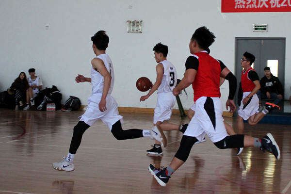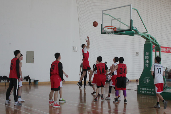 哨声一响,双方球员入场,裁判发球,随着两队队员高高跃起争球,比赛进入一个紧张的氛围。两方队员快速奔跑,积极投篮。只见带球队员一个反身带球避开防守,一个假动作带球向前,接着一个漂亮的三步投篮引起观众的欢呼和掌声。