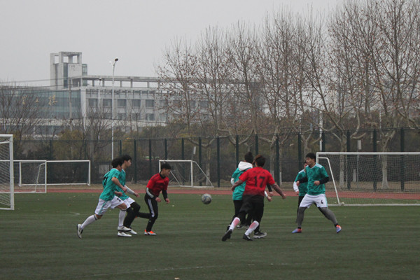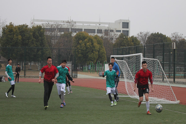 比赛于十二点三十五准时开始,对于本学期第一次周周赛事,同学们展现出蓄势待发,精力充沛的面貌。休息了一个寒假,比赛热情没有退却,在开场十四分钟时,1803班的小学弟张豹率先进了一球,几分钟后,学长石本也追进了一球。细小的雨水和满头汗水一起挥洒,场外同学的加油声和足球运动员的配合声一起传遍足球场。最终,1803班林超同学与张豹同学再次进球,以3:1的成绩完胜1704班的学长。