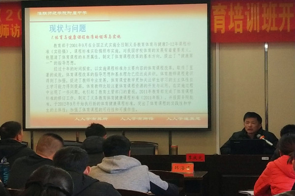 开班仪式后由江苏省体育特级教师季庆宪老师做了题为《体育新课程实施中的问题与对策》专题讲座。