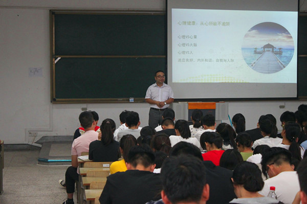 为了帮助2018级新生尽快适应大学校园生活,实现从高中生到大学生的角色转换,同时帮助新生树立健康良好的心态,万象城allwincity官网于9月13日下午在崇文楼楼开展了心理健康教育讲座,由心理咨询中心的王兆轩老师讲授,2018级全体新生参加了本次讲座。