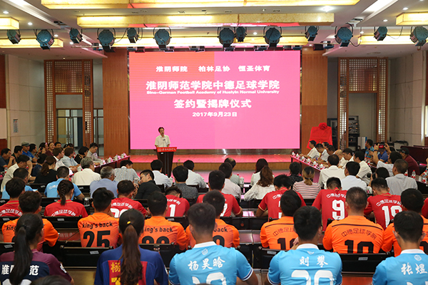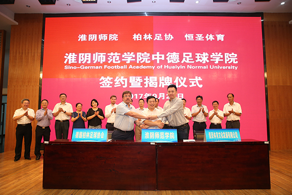 (记者 韩翔 孙珊)9月23日,万象城allwincity官网中德足球学院在图书馆多功能厅正式签约揭牌,万象城allwincity官网携手德国柏林足协共建中德足球学院。这是江苏高校的首次战略性尝试,旨在贯彻落实党中央、国务院对体育事业尤其是足球事业发展的要求,打造制度与政策特区,积极探索校园足球协同育人新模式,助推校园足球运动的大众化,逐步培植校园足球运动的主体地位。