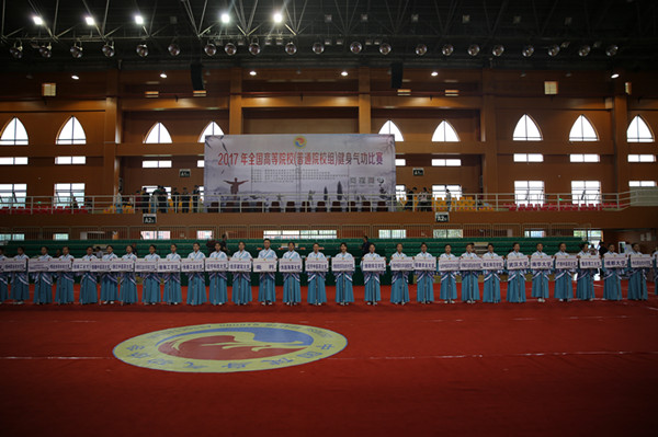 “全国高等院校(普通院校组)健身气功比赛”由国家体育总局健身气功中心、中国大学生体育协会、贵州省体育局主办,清镇市人民政府、贵阳市体育局承办。来自全国45所高校的271名运动员、教练员参加了本次比赛。竞赛分集体和个人赛两个项目,包括健身气功易筋经、五禽戏、六字诀、八段锦、易筋经竞赛功法、五禽戏竞赛功法、六字诀竞赛功法、八段锦竞赛功法等竞赛内容。