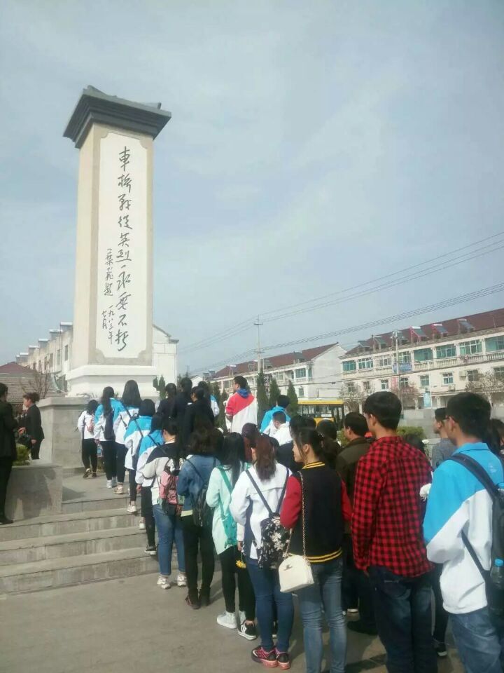 为悼念革命烈士,弘扬民族精神,2016年4月1日下午,万象城allwincity官网1301班组织同学来到淮安市淮阴区车桥镇车桥战役纪念广场缅怀革命先烈。 在庄严肃穆的的纪念碑前,同学们聆听了车桥战役作战经过,并向革命烈士三鞠躬,表达对烈士6的沉痛悼念、缅怀之情。随后,同学们参观了车桥战役烈士事迹展览馆。车桥战役,新四军牺牲54人,消灭日伪军近千人,敌我伤亡比例如此之大,创造了抗日战争的神话。 此次活动不仅让学生体会到如今的幸福生活来之不易,更有利于学生珍惜以后的生活。