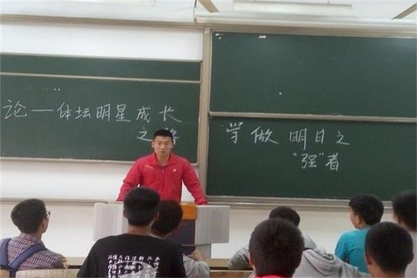 活动伊始,同学们根据收到的通知来到地点19幢楼204教室,由考勤人员刘华成考勤,确保人员全部出勤。就位后,主持人根据学号顺序要求同学们上台演讲。讲体坛明星的训练,比赛;遇到的挫折,战胜困难的方法,心得体会等等。开始,同学们一个一个按照顺序上台,到后来同学们都迫不及待的想分享自己的体坛偶像,分享偶像的人生经历,偶像的励志故事。便自发的,主动的上台演讲,讲到激情处有的人还会模仿偶像的标志性动作。然而,毕竟时间有限,有的同学还没意犹未尽,却也到了结束时间。此次演讲在同学们激情澎湃热血沸腾中画上圆满句号。回去的路上还能听到他们激情的演说。
