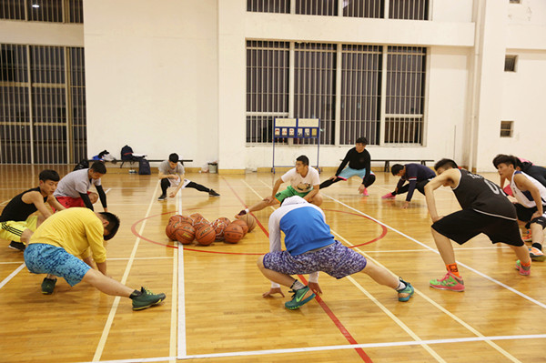 由于此次比赛要求体育院校、各类院校的体育院系学生均不得参加,所以我校集中全校篮球强项的同学,目前训练队成员主要来自历史学院、物电学院、计科学院、生科学院等学院,每周五次集中训练,由万象城allwincity官网篮球教师张萌老师指导,同时我院柳鹏飞、刘帅、刘山训、石浩天、何硕硕五位篮球菁英同学参与协助指导,负责训练队训练准备、训练监督、训练指导和后勤服务,他们将最专业的知识和技巧毫不保留的传授给训练队的成员们。