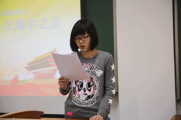 评比会上,每个候选班级代表按照抽签顺序依次上台展示,并围绕“恩来精神”的学习传播情况、班风学风的建设情况、公益活动的开展情况,以及未来工作计划等方面分别进行了深入介绍。评比会持续了一个多小时,气氛活跃而紧张。