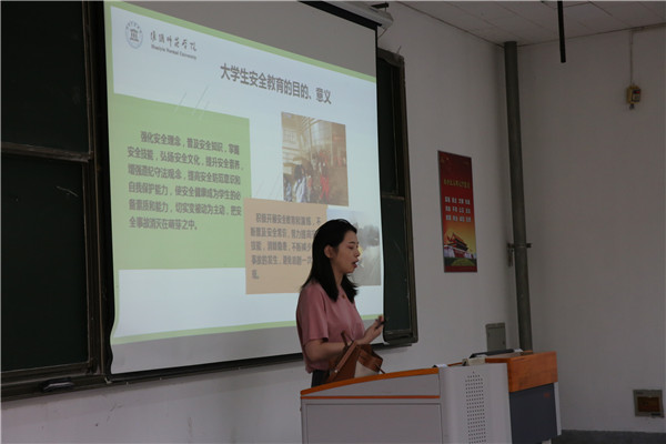 在这次新生安全教育课中,江舟老师为新生讲述了给新生宣传安全教育的重要性和意义,本次课程中主要讲了强化安全理念,普及安全知识,掌握安全技能,弘扬安全文化,要求同学们增强遵纪守法的观念,提高安全防范意识,自我保护能力,让安全事故消失在萌芽之中。江舟老师着重为新生讲述了大学生活中经常伴随身边的安全事故,比如宿舍用电危险和宿舍火灾的发生以及平时生活中经常遇到的一些安全问题,并提出了一系列解决的方法。