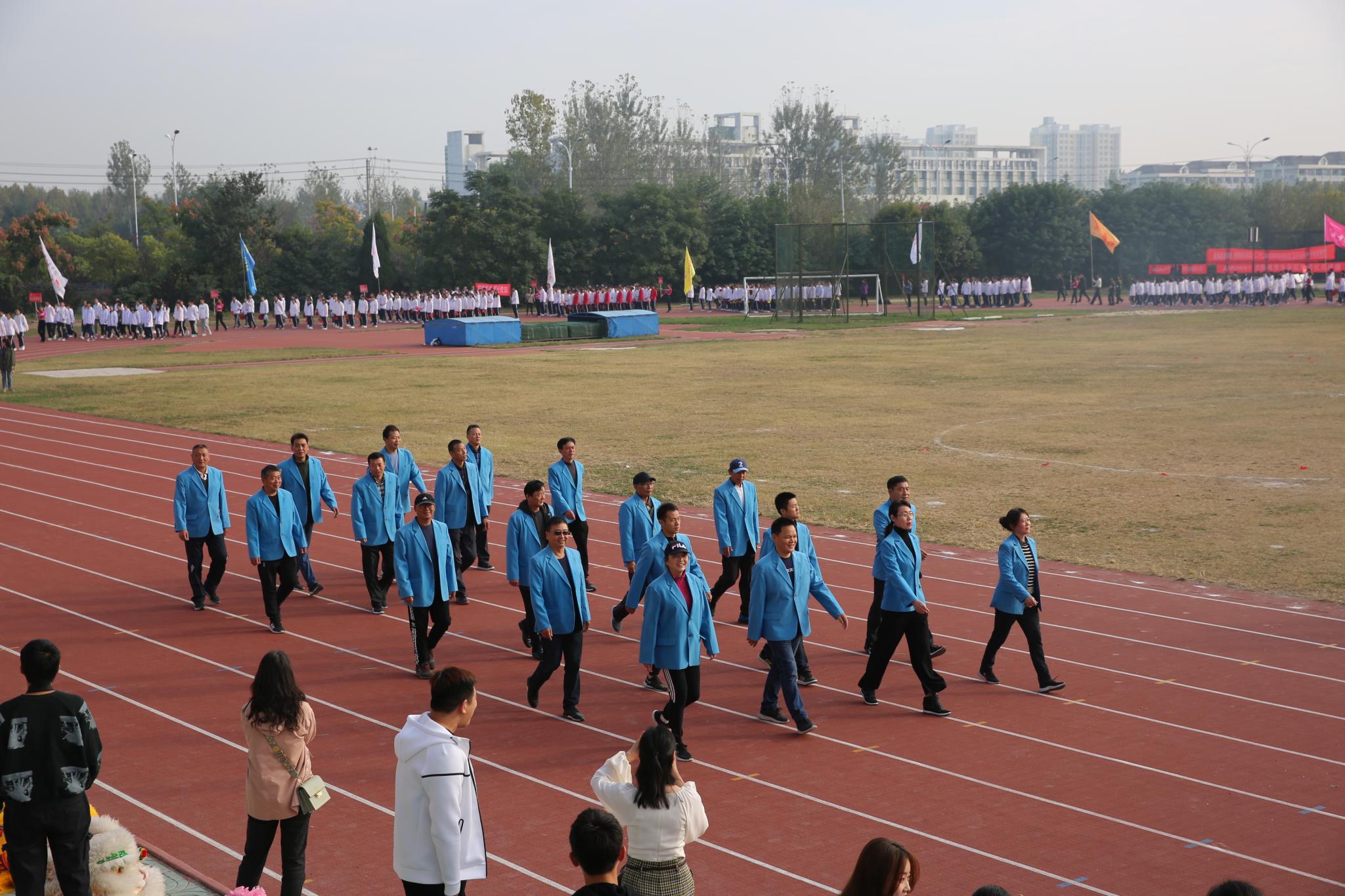 运动会首先进行的是精彩的入场式。每个系每个班的表演集中了大家的智慧和汗水,每个方队更是各班级风貌和思想品质的一次综合展示。学校领导也出席了本次开幕式,在主席台上认真检阅各个学院努力奋斗数日的优秀成果。