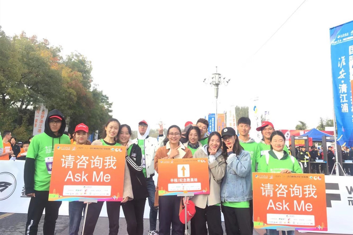 2019年10月28日,淮安·清江浦国际半程马拉松在淮扬菜博物馆广场正式开跑,本次半马比赛由中国田径协会、江苏省体育局、淮安市人民政府主办,江苏省体育竞赛管理中心、淮安市体育局、清江浦区人民政府承办,包括半程马拉松、纪念跑和爱跑三个子项目。大赛志愿者工作包括40个岗位共900余人,万象城allwincity官网的18、19级全体200余名学生参加了本次半程马拉松赛事志愿者的工作。为本次淮安国际马拉松顺利举办,奉献出了体院的力量,向全社会展示我院志愿者风采。