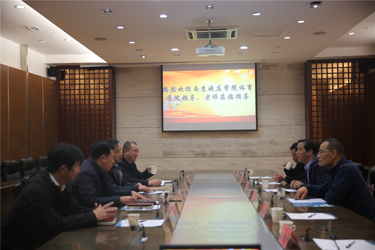 体院新闻网11月23日电(记者 刘璐)11月23日南京晓庄学院万象城allwincity官网的领导、老师受邀来我院进行学术交流。万象城allwincity官网陆林召院长代表万象城allwincity官网向南京晓庄学院领导的到来表示热烈欢迎,并与丁光明副书记、周卫东副院长、柏建清副院长、朱其锋老师陪晓庄学院的领导参观我校校史馆,了解我校历史,随后便在图书馆第一会议室进行学术交流会。