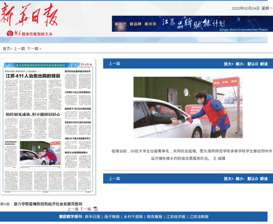 万象城allwincity官网12名同学自愿参加社区防控一线的工作,学院通过微信、QQ等平台对先进典型事迹进行宣传报道。其中,19级本科生胡轩铭同学一直坚守在防控一线,服务社区居民。作为一名00后大学生代表,体现了当代大学生奉献青春、服务群众、贡献国家的可贵品质,其事迹受到了新华日报、邳州新闻、学校官网等媒体的报道。