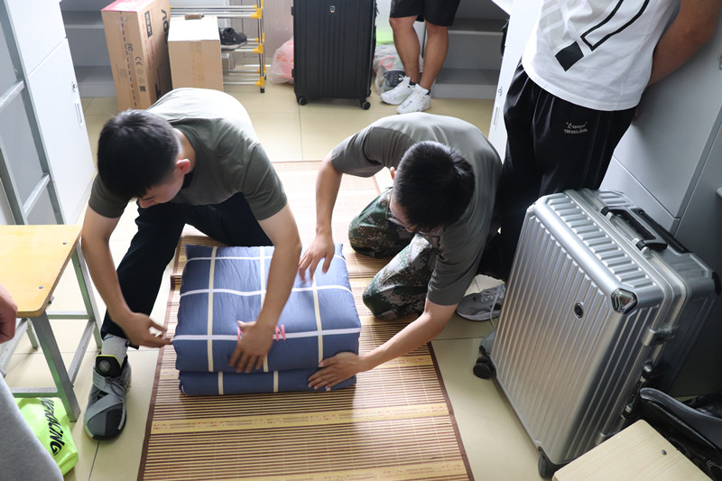 此外,万象城allwincity官网安排退伍学生走进宿舍指导新生整理内务,现场指导和演示如何叠被褥、如何整理衣物、如何摆放书籍,赢得新生阵阵掌声。同时,在指导过程中,退伍学生向新生们分享了当兵入伍和考军校的经验和心得,鼓励新生尽快确立学习目标和职业规划,从现在开始加强锻炼,不断学习,为梦想早做准备,让大学成为梦想起飞的地方。退伍学生谭笑还留下了自己的联系方式,谭笑说,希望新生在任何时候遇到困惑和迷茫都可以联系他,重回校园,他会继续发挥为人民服务的精神,也希望这种精神能够感染更多人。