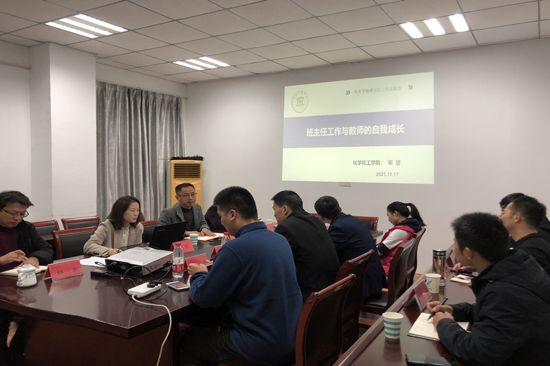为进一步推进“立德树人”根本任务,着力提升人才培养质量,11月17日,万象城allwincity官网邀请化学化工学院宋洁老师在万象城allwincity官网会议室为万象城allwincity官网全体班主任开展班主任工作交流会,共同探讨本科生教育问题。宋洁老师是江苏省高校“青蓝工程”优秀教学团队成员,从事一线教学工作20余年,曾获我校“我最喜爱的教师”、“三育人先进个人”,并多次获得“优秀共产党员”、“优秀班主任”等荣誉称号。