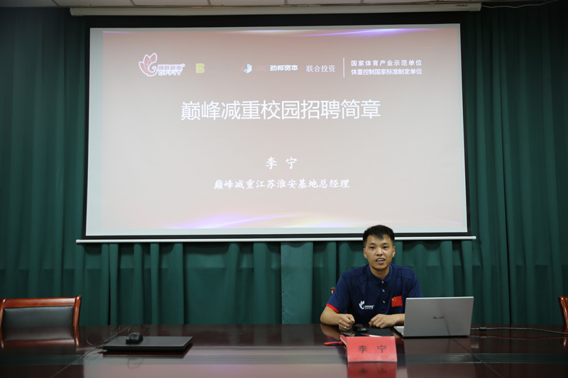 随后,巅峰减重江苏淮安基地的总经理李宁与学生进行双选见面宣讲,同学们就实习的想法和疑问与李经理进行交流和咨询。