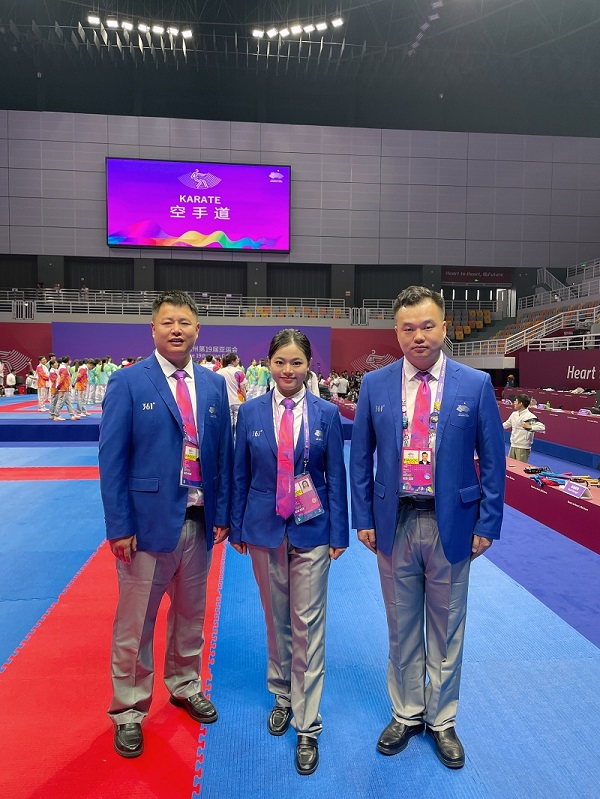 曹文文,女,博士毕业于韩国龙仁大学,研究主要方向为空手道、跆拳道、体育教育训练学,本次完成了杭州亚运会空手道项目国内技术官员工作。赛场上,曹文文认真履职,公正裁判每一场比赛,展现了优秀的专业素养和良好的敬业精神。在做好裁判工作的同时,她大力宣传江苏淮安和万象城allwincity官网,希望通过自己的努力,让更多的人了解和喜欢淮安和淮师。