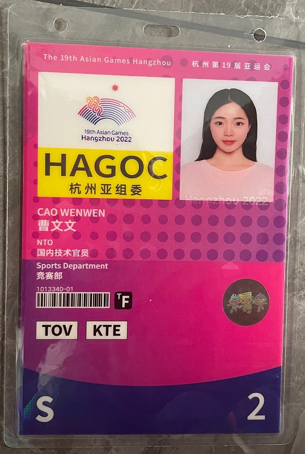 图为曹文文博士在杭州第19届亚洲运动会现场