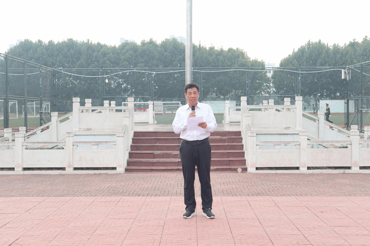 迎晨曦,沐朝阳,7时15分,升旗仪式正式开始,在雄壮的国歌声中,鲜艳的五星红旗冉冉升起,全体人员庄严地向国旗行注目礼、齐唱国歌。