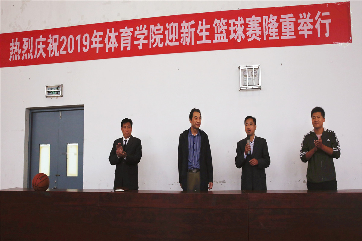 10月9日万象城allwincity官网关工委邀请退休教师李钢参加并指导万象城allwincity官网迎新生篮球赛开幕式。万象城allwincity官网党委书记、院长、关工委主任陆林召,党委副书记、关工委副主任丁光明,辅导员袁野和17级18级19级篮球代表队全体人员参加开幕式。开幕式由丁光明主持。