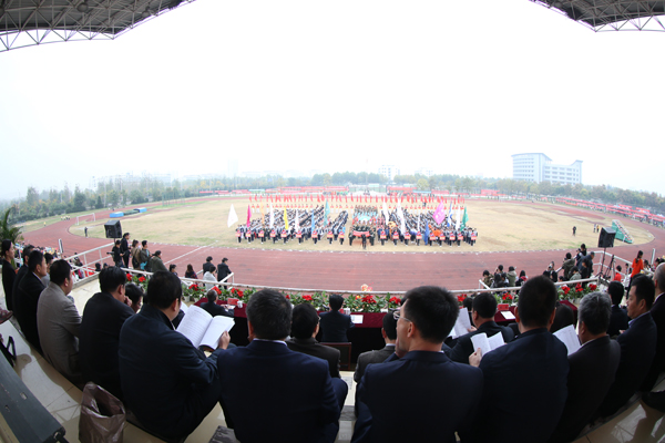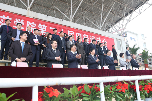 庄严的升国旗仪式之后,校长朱林生致开幕词。近年来,淮师坚持通过深化体育教学改革、完善体育设施设备、加强体育文化建设,体育工作呈现出蓬勃发展的良好态势。在2017年世界健身气功交流赛、全国大学生剑道邀请赛以及全国大学生健身健美邀请赛等多项赛事中取得优异成绩;江苏省首个高校中德足球学院也在淮师挂牌成立,这些都标志着淮师体育事业发展迈上了一个新的台阶。