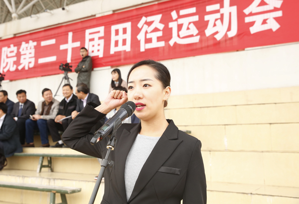周开欣同学、翟晓阳老师分别代表运动员和裁判员宣誓。
