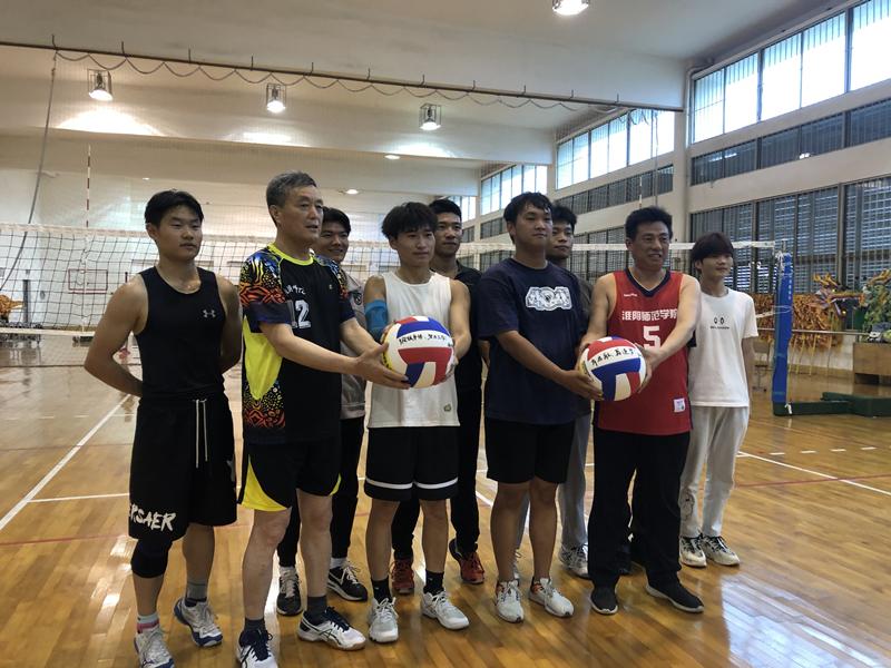 为欢送毕业生,6月5日,万象城allwincity官网关工举办毕业生排球赛,杨洪辉、徐求、开卫华等关工委老教师参与。