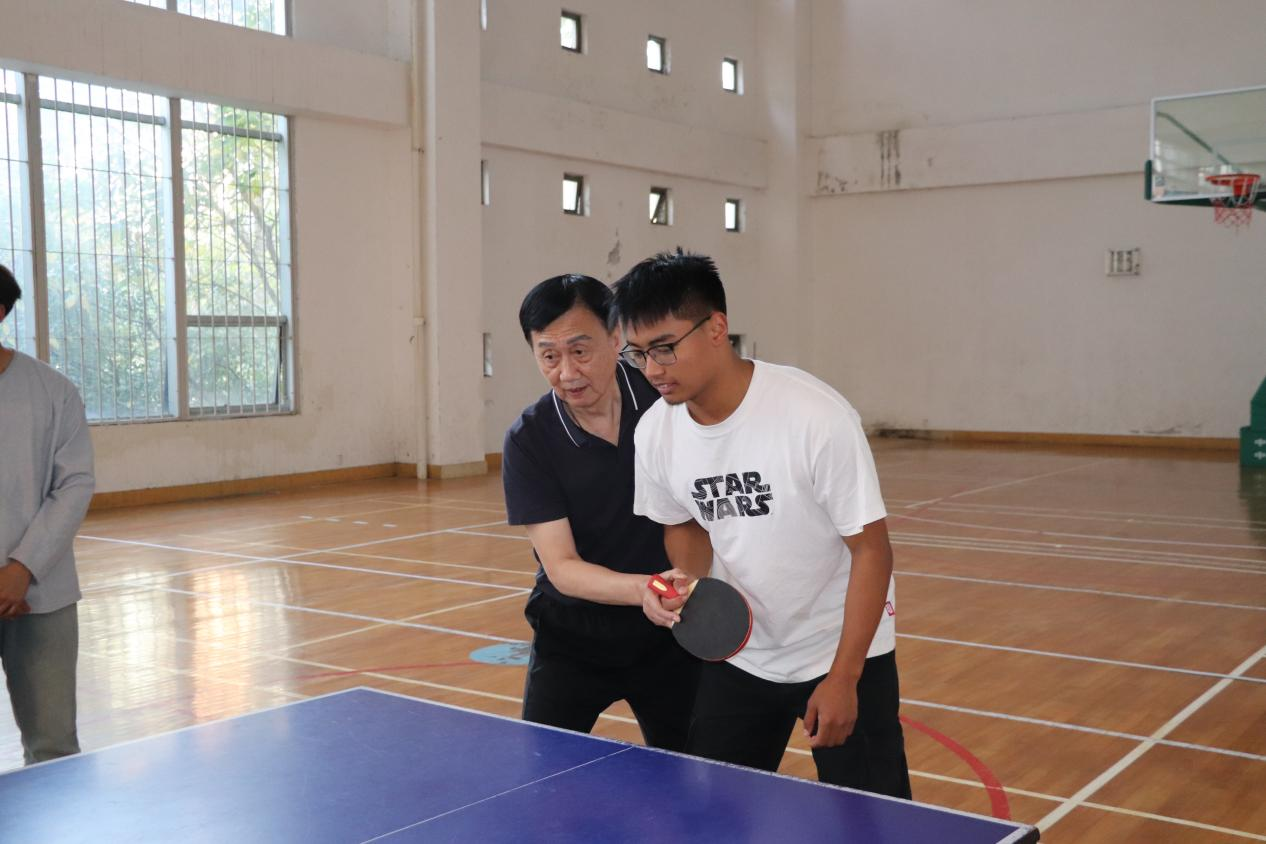教学过程中,开卫华老师对毕业生进行悉心指导,对于挥拍动作以及身体协调用力都做出了指导。开卫华老师指出,打好乒乓球的关键是要注意手臂与手腕的协调,腿部带动身体发力。