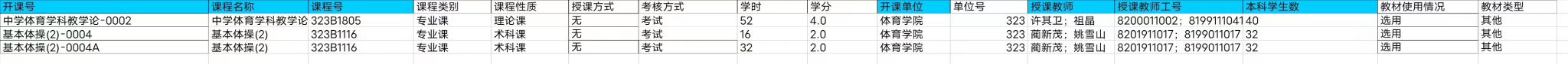 公体课表